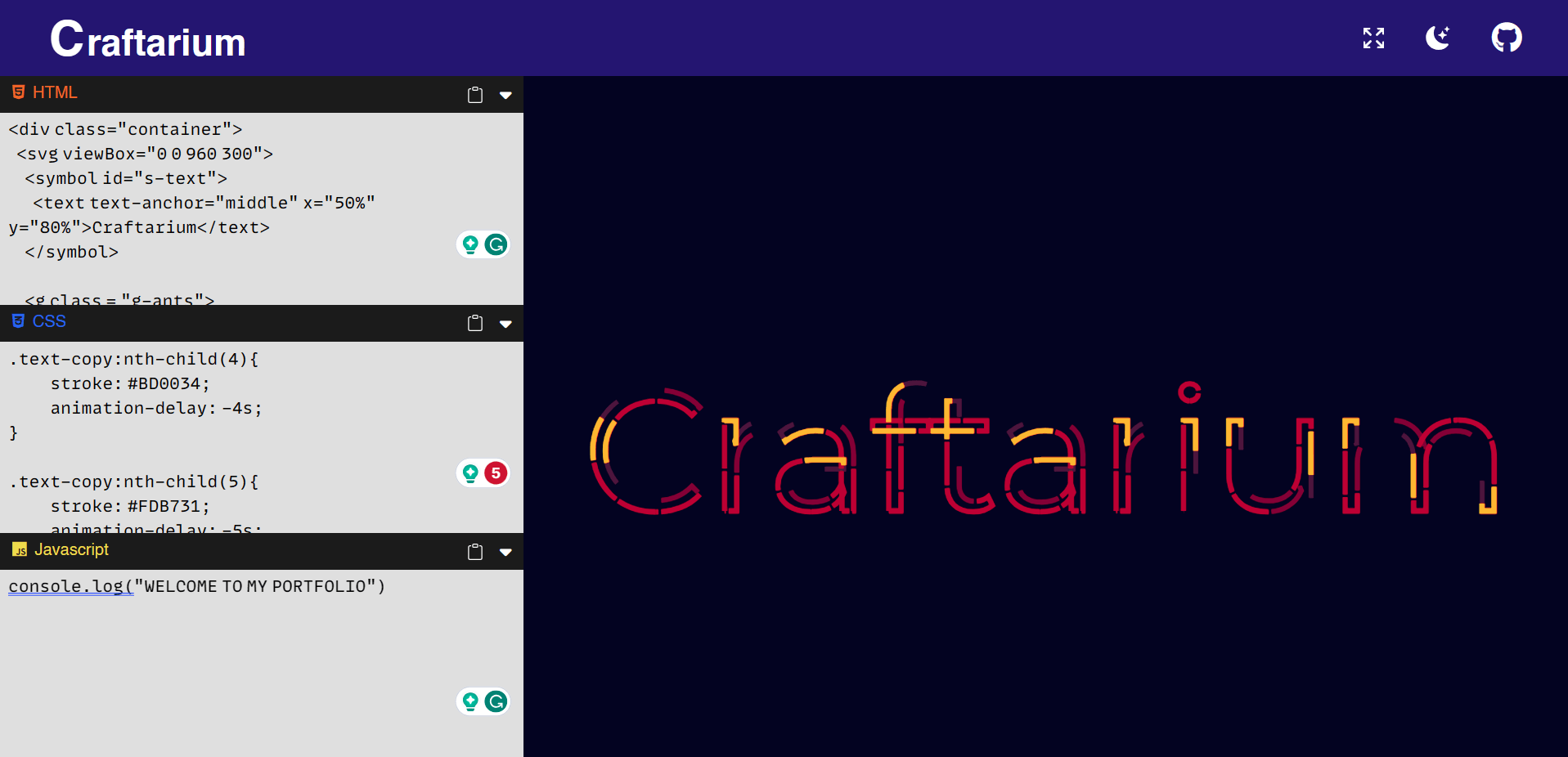 Craftarium is an online code editor which allows you to preview your web development process in real time.